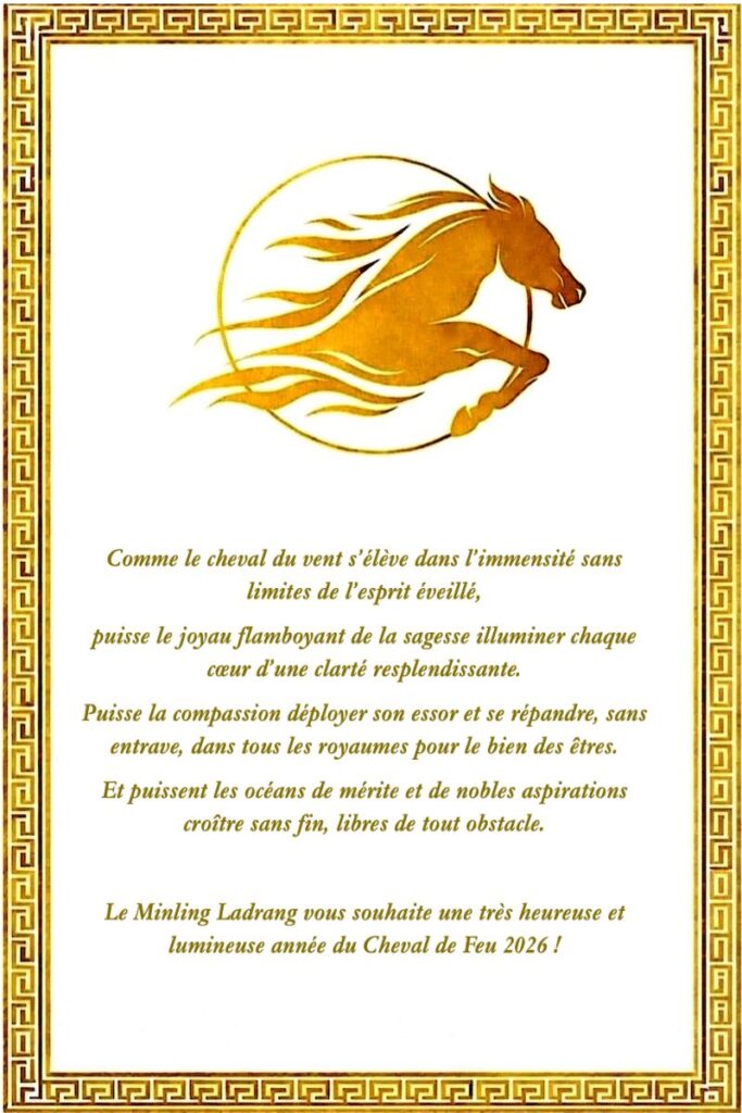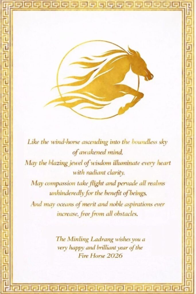 Le 15 décembre 2025, la sangha internationale de Mindrolling a célébré l’anniversaire de Minling Jetsün Rinpoché. Minling Dungsé Rinpoché a conduit le Ladrang de Mindrolling — comprenant Minling Jetsün Khandro Rinpoché, Minling Jetsün Dechen Paldrön, Sangyum Kushog et Britton la — ainsi que l’assemblée des moines de Mindrolling, les nonnes de Samten Tse et les membres de la sangha internationale de Mindrolling, pour offrir un vaste mandala ainsi que les offrandes du corps, de la parole et de l’esprit à Jetsün Rinpoché. L’assemblée réunie a formulé de sincères aspirations et dédicaces pour la longue vie et les vastes activités de Jetsün Rinpoché. Une fois encore, à l’occasion propice de l’anniversaire