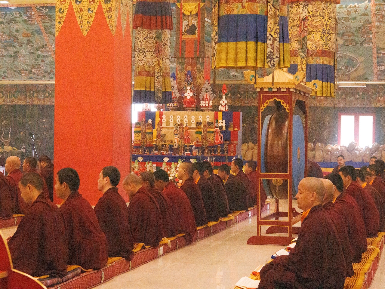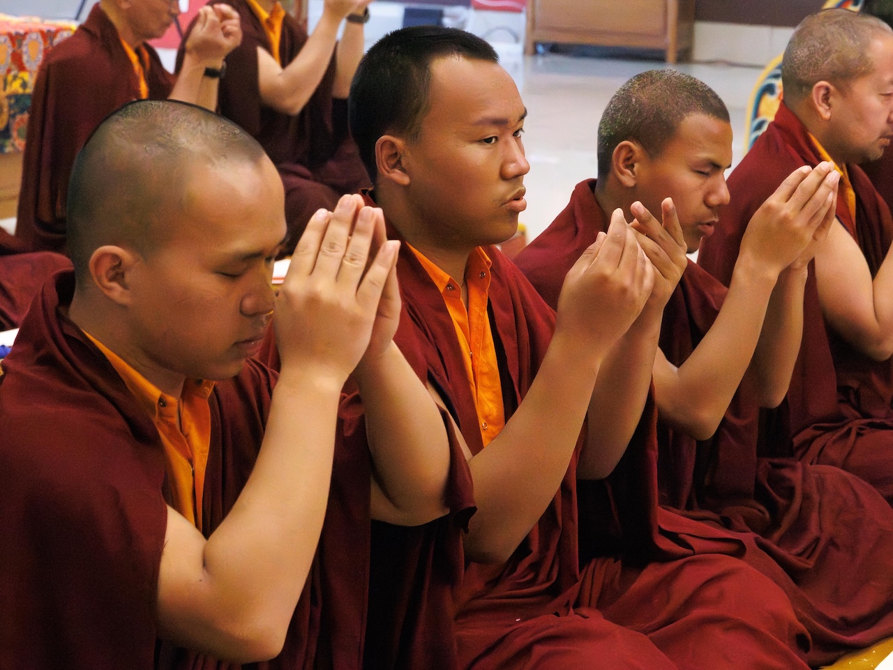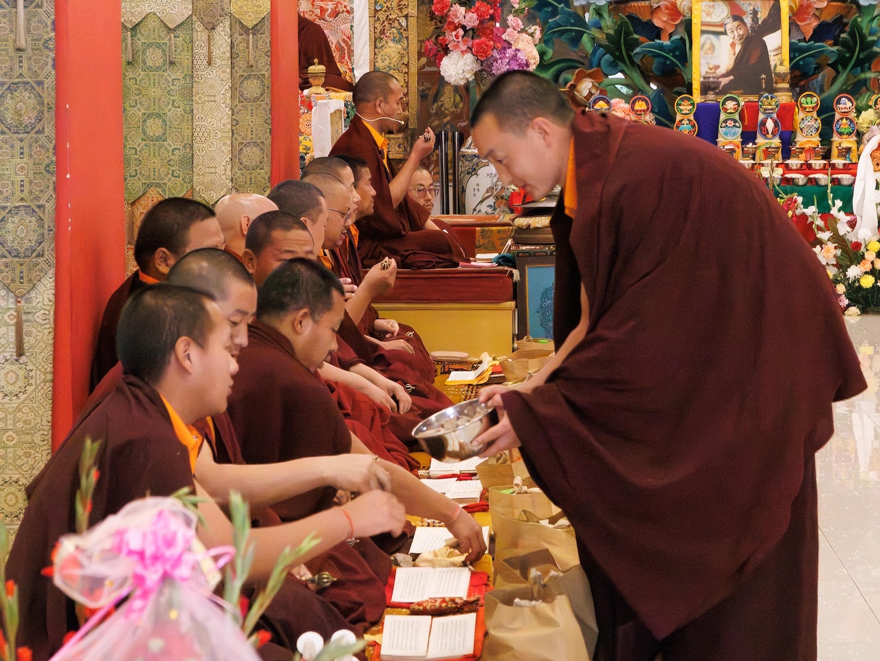 Bien d’autres pratiquants, ne pouvant être présents physiquement, s’unirent également à la pratique grâce à la diffusion en direct, de sorte que tous participèrent d’un même élan de dévotion à l’accomplissement de ce vaste ganachakra.