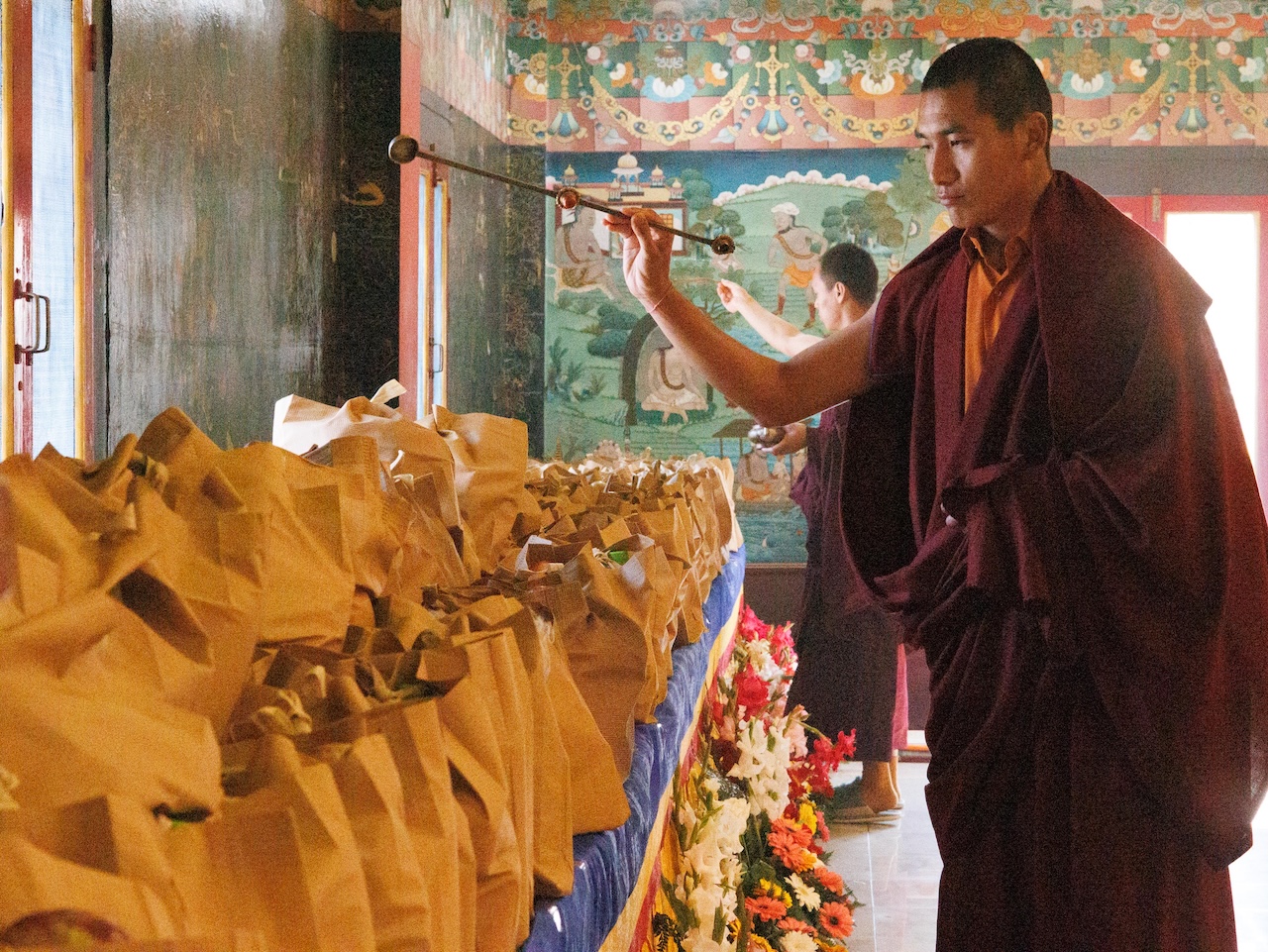 Le troisième jour du Losar de l’année du Cheval de Feu 2026, la sangha de Mindrolling se rassembla pour offrir un ganachakra en commémoration du parinirvana de Kyabjé Minling Trichen.
